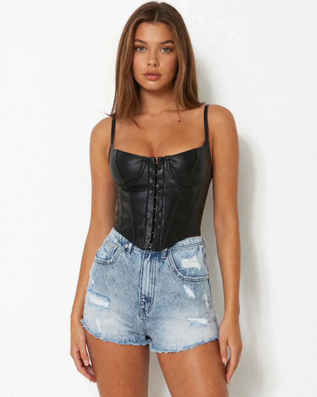 Women’s Genuine Cowhide Leather V-Neck Lace-Up Corset Vest