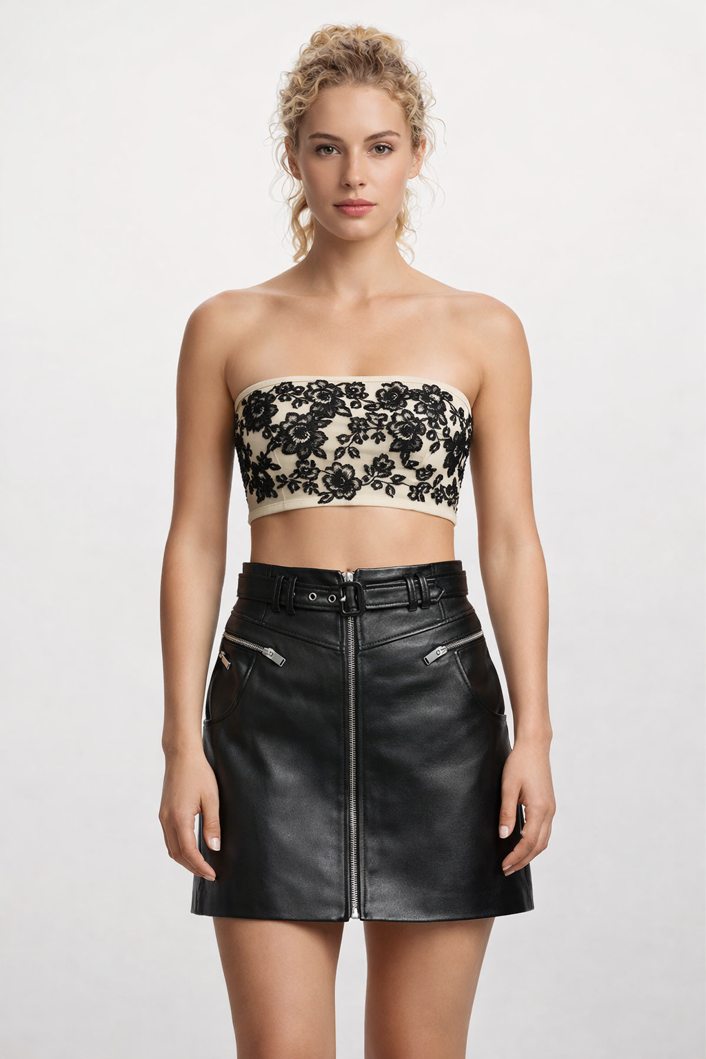 Women’s Black Genuine Leather Belted Zip Mini Skirt - Butter Soft Premium Finish