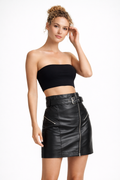 Women’s Black Genuine Leather Belted Zip Mini Skirt - Butter Soft Premium Finish